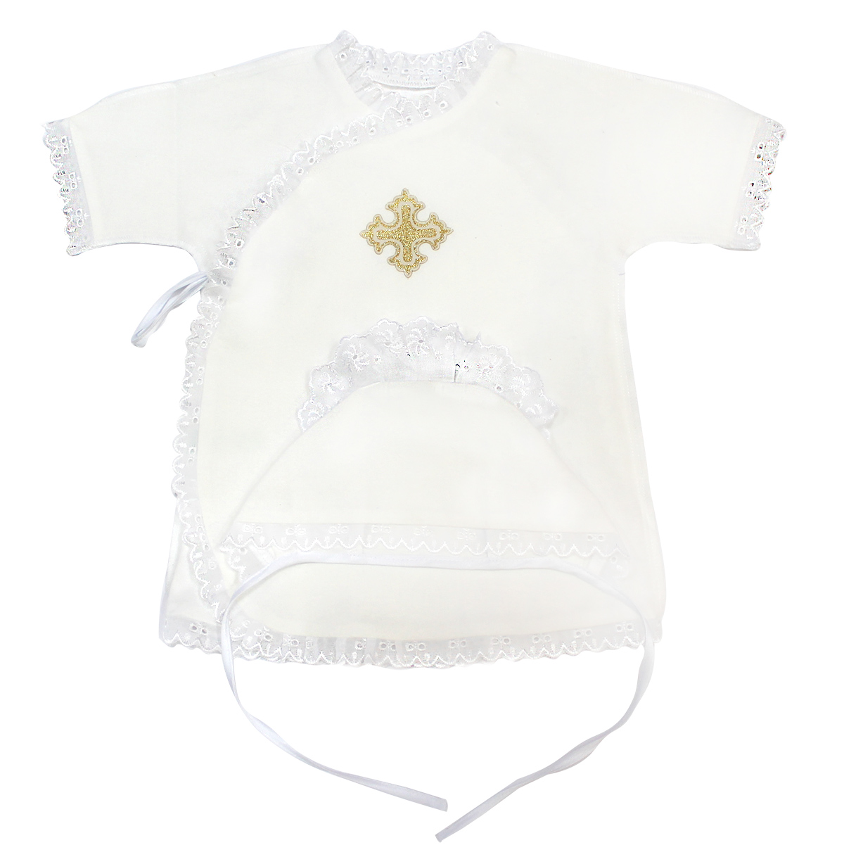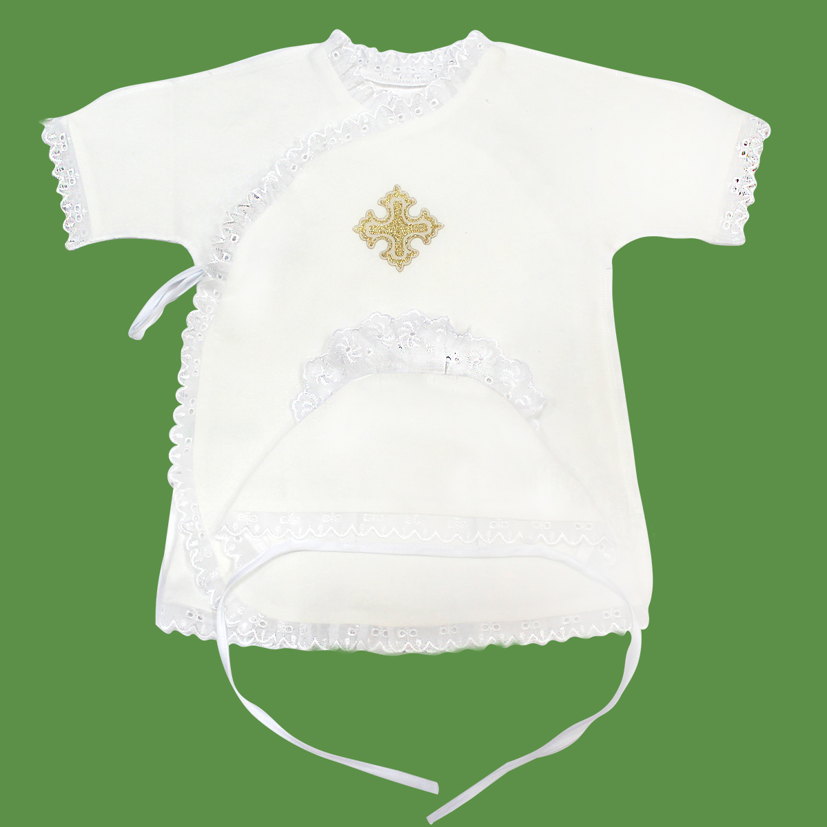 Крестильный набор 0-6 мес.(фланель;отделка - шитьё), сорочка с запахом + чепчик.(К)