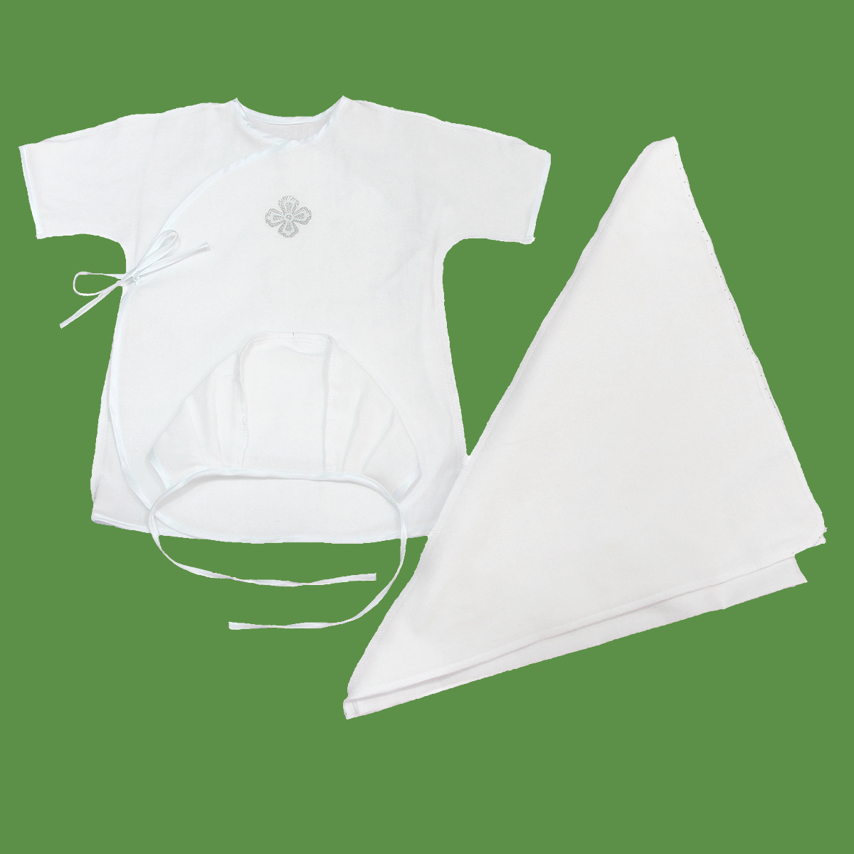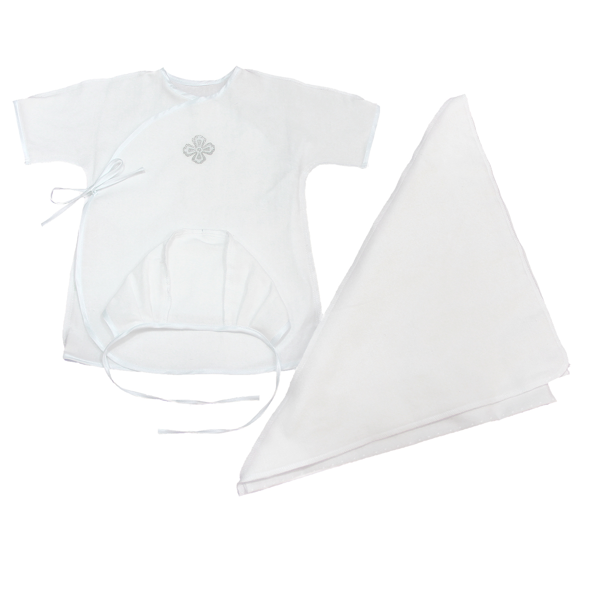 Крестильный набор 0-6 мес.фланель (пелёнка с капюшоном+сорочка с запахом+чепчик).К.