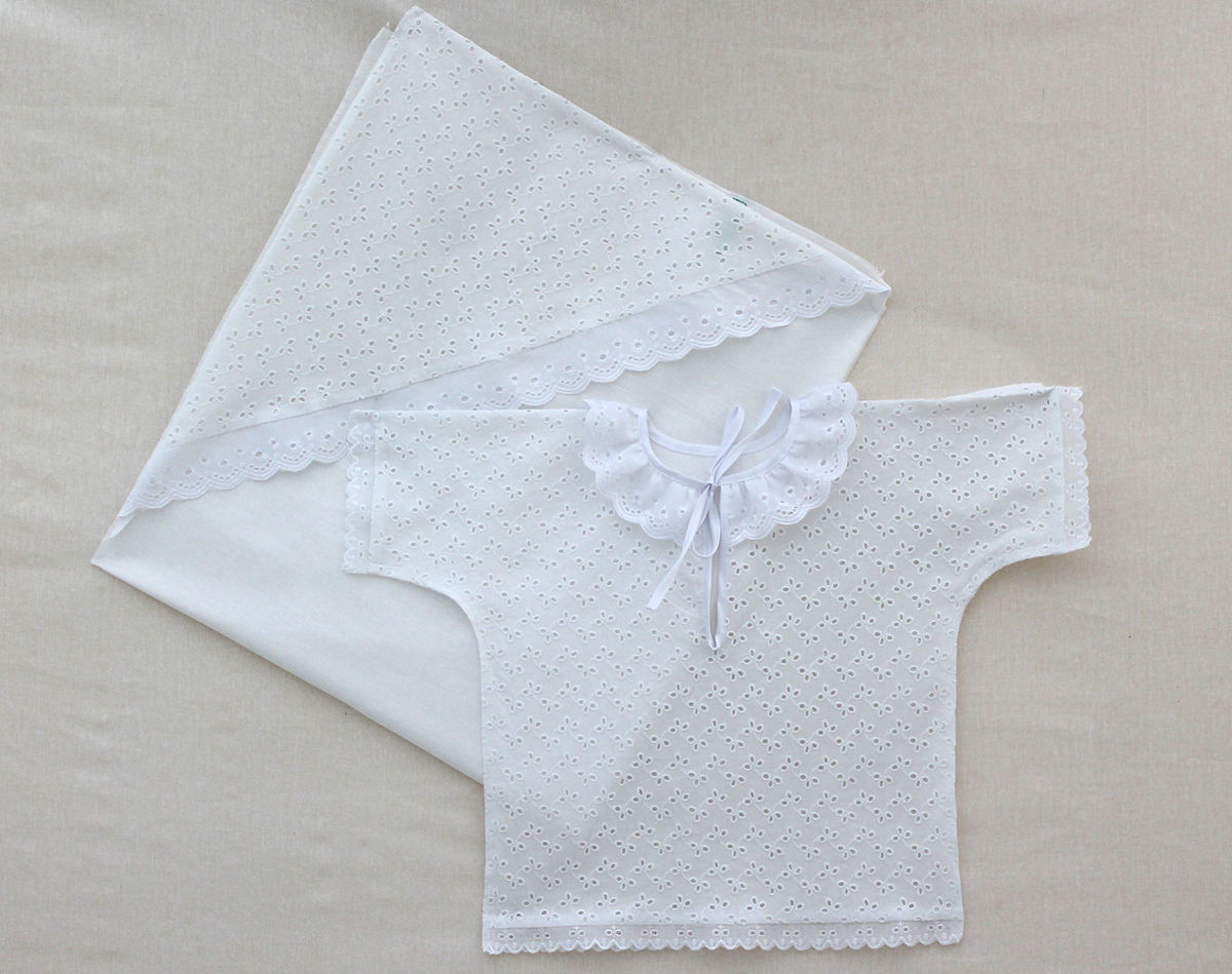 Крестильный набор 6-12 мес, белый (пеленка с капюшоном+рубашка) (К.)