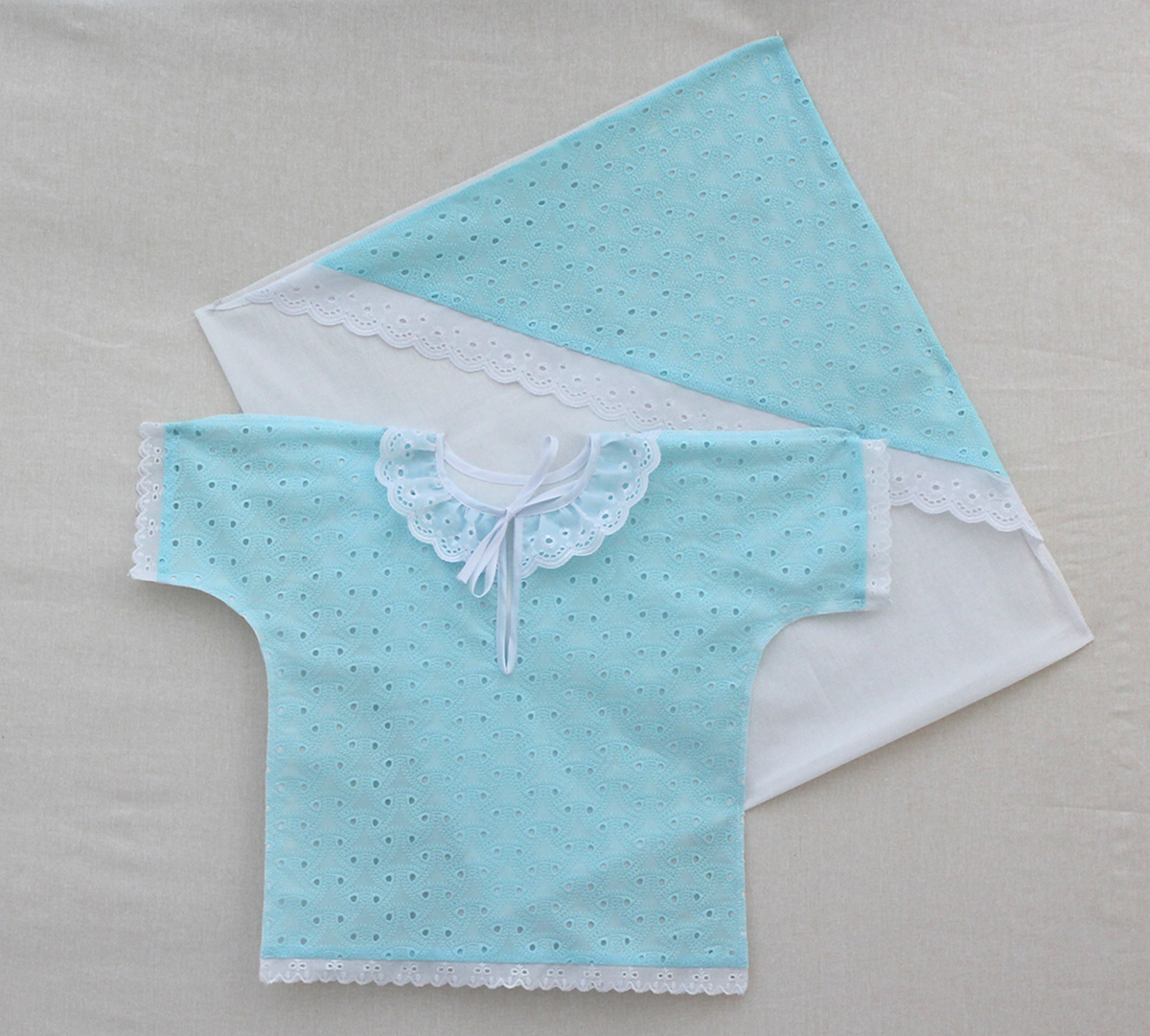 Крестильный набор 6-12 мес, голубой (пеленка с капюшоном+рубашка) (К.)