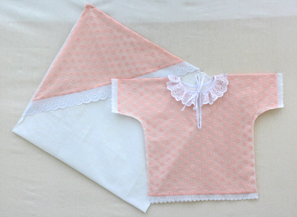 Крестильный набор 6-12 мес, розовый (пеленка с капюшоном+рубашка) (К.)