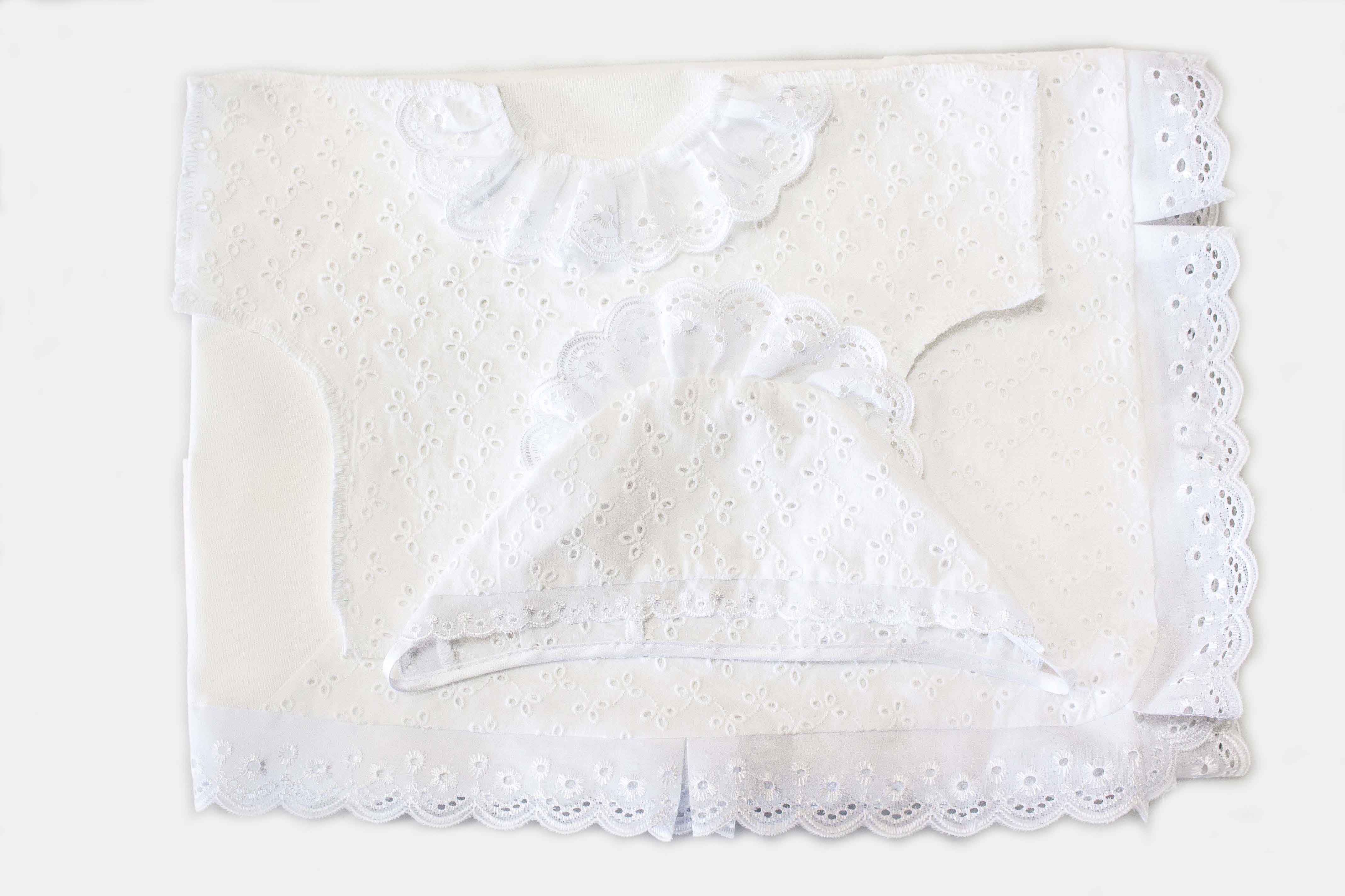 Хлопок шитье белый , пеленка+чепчик+распашонка