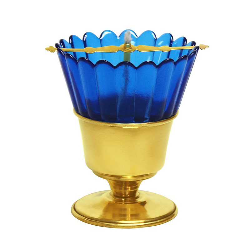 Лампада настольная синяя (набор: лампада, подлампадник латунный, фитиль, поплавок)