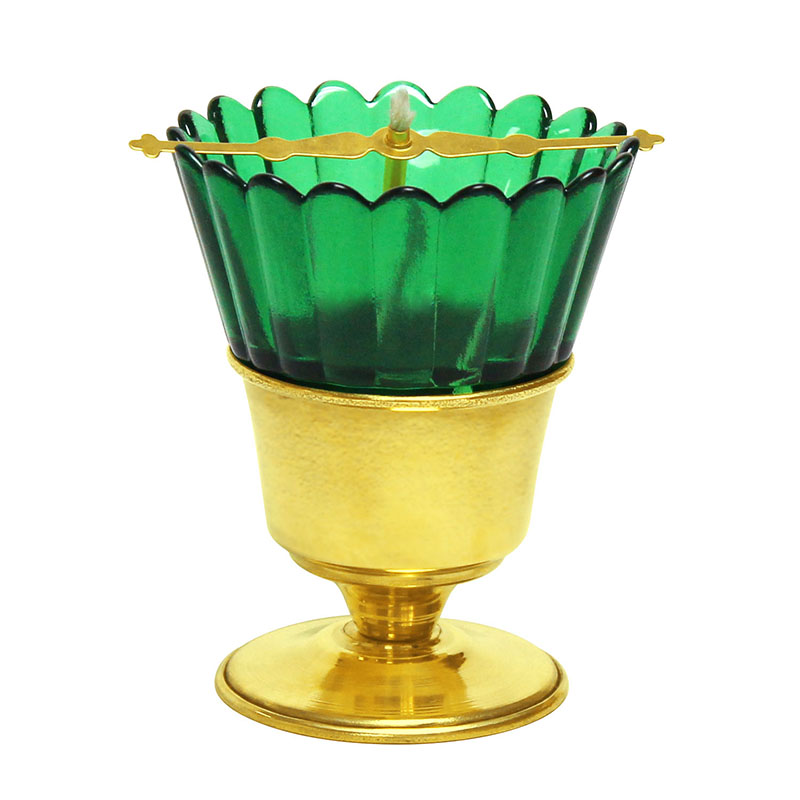 Лампада настольная зеленая (набор: лампада, подлампадник латунный, фитиль, поплавок)