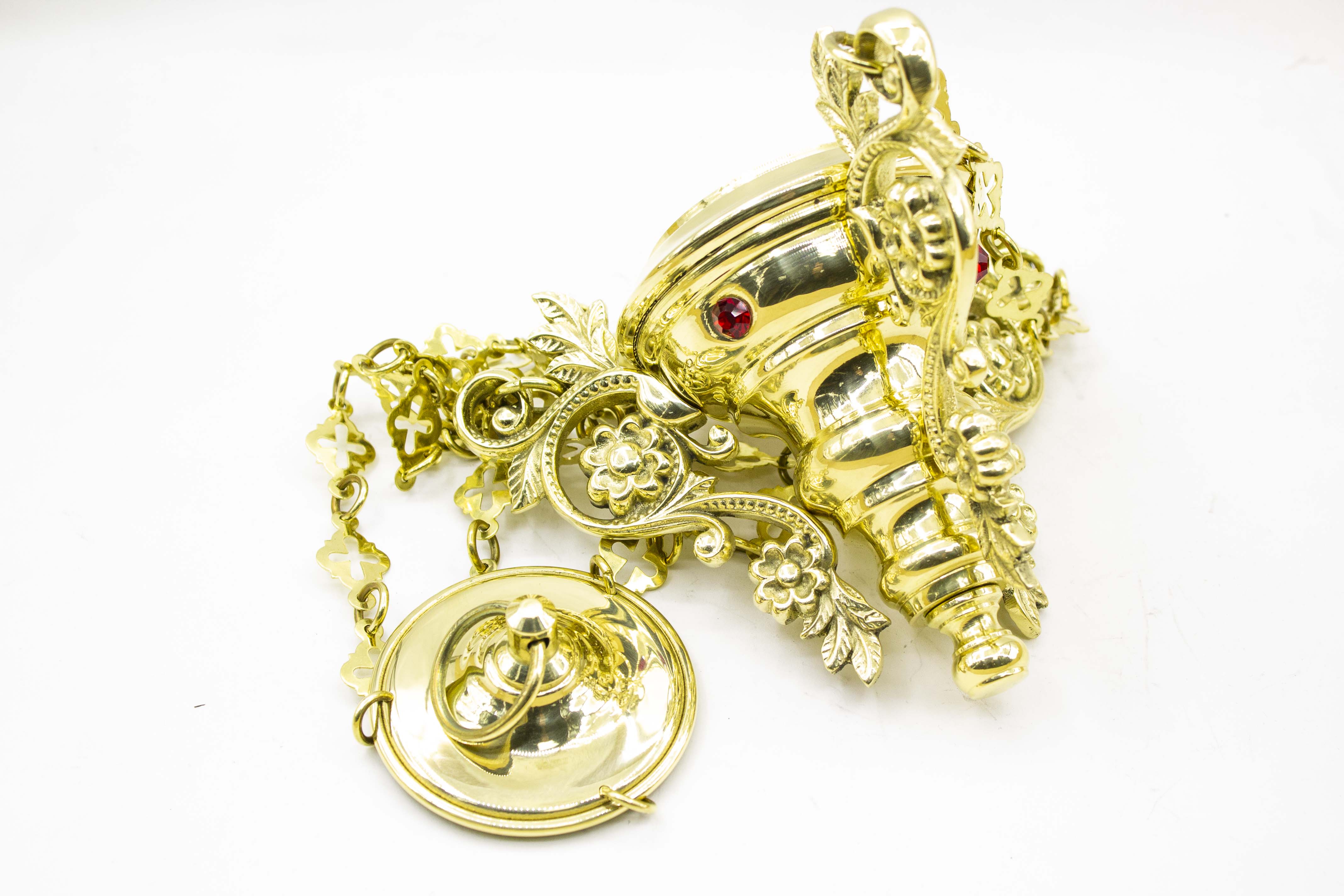 Лампада подвесная с литыми ветками и камнями малая