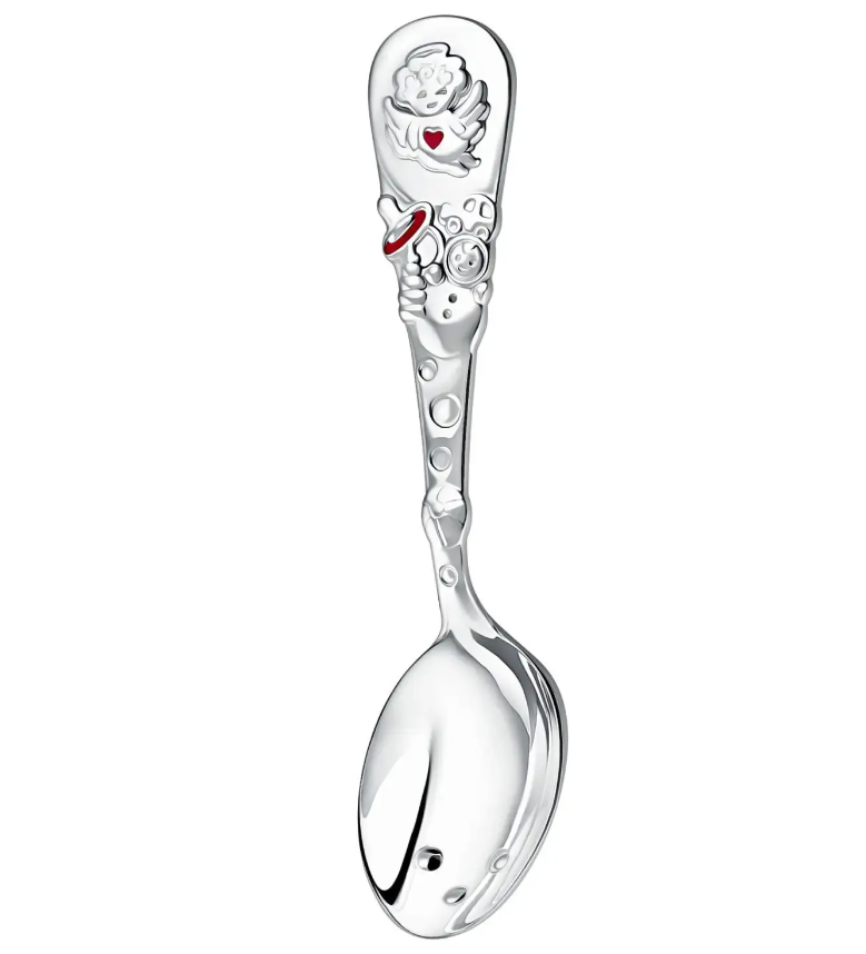 Ложка детская "Ангел" посеребренная с розовой эмалью