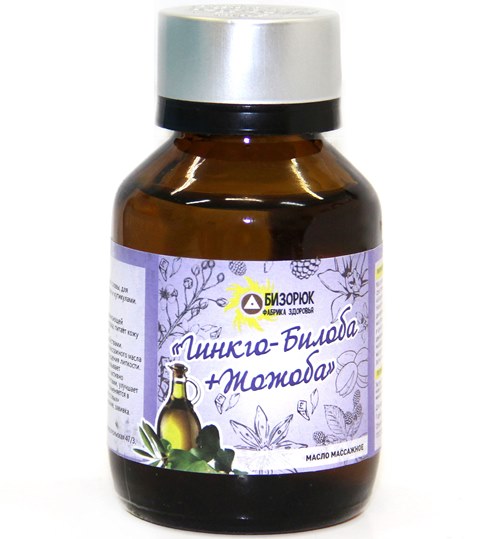 Массажное масло "Гинко Билоба+Жожоба". Стекло 60 мл.