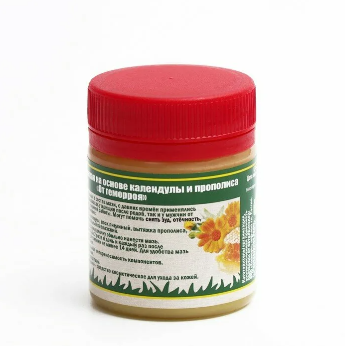 Мазь от геморроя, на основе календулы и прополиса, Пластик 40мл."Кавказский целитель"