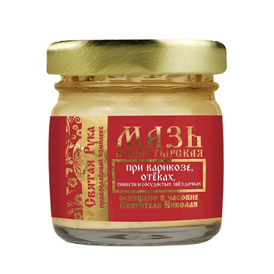 Мазь при варикозе, отёках, тяжести и сосудистых звездочках, стекло, 30 мл, "Святая Рука"