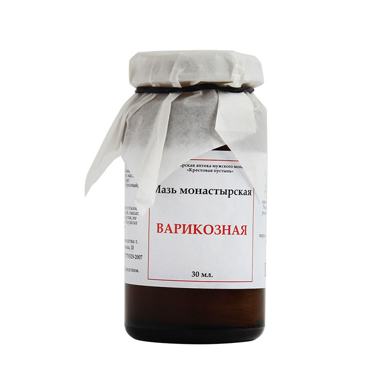 Состав мази от варикоза: воск пчелиный, мед натуральный кавказский, масло имбирное, масло календулы, масляный экстракт конского каштана, деготь березовый, пчелиный подмор.