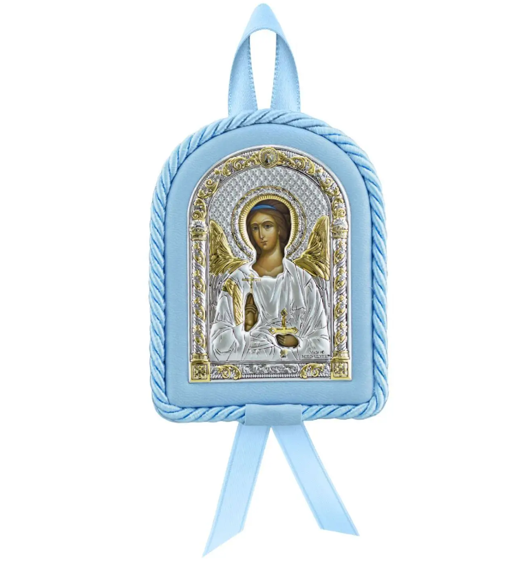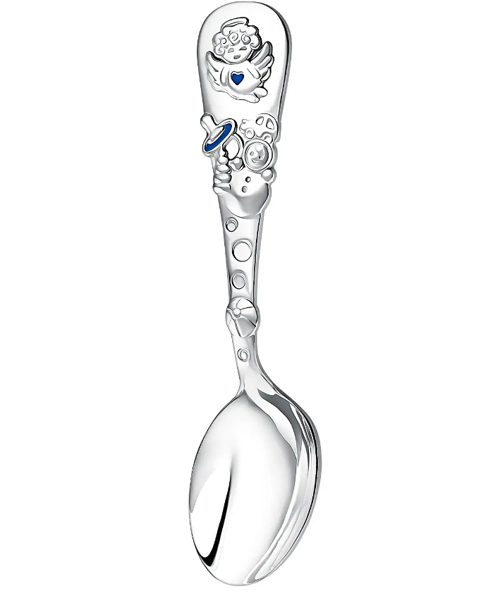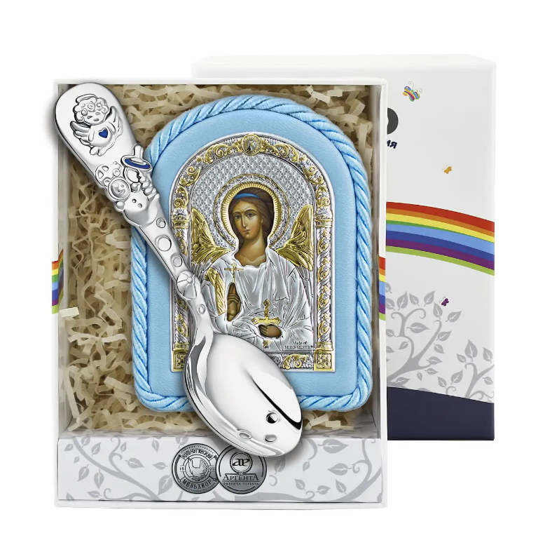 Набор детский "Ангел Хранитель" посеребрение (икона+ложка "Ангел"), цвет-голубой
