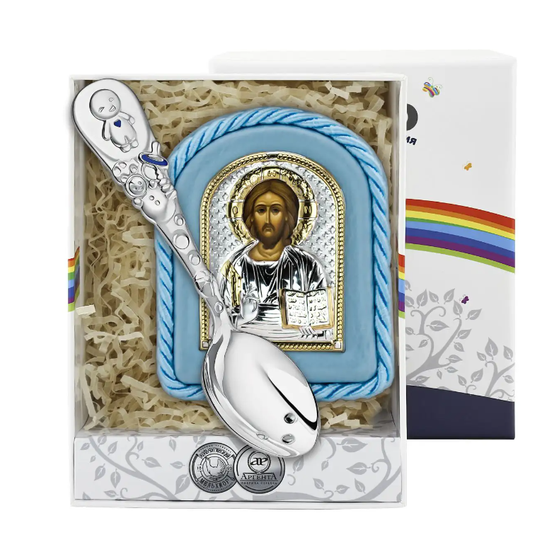 Набор детский "Господь Вседержитель" посеребрение (икона+ложка "Мальчик")