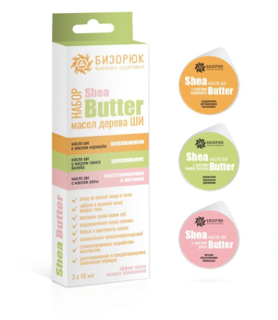 Набор масел Ши с маслами маракуйи, гинкго билоба и розы, пластик, 3х10 мл, "Бизорюк"