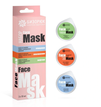 Набор масок из трех видов глины, пластик, 3х10 мл, "Бизорюк"
