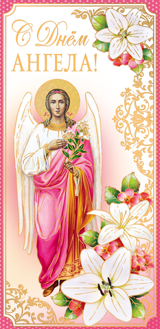 Открытка-конверт "С Днем Ангела!". Лак, золотая фольга (КД-031)