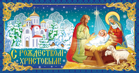 Открытка "С Рождеством Христовым!" двойная (РХ-063)