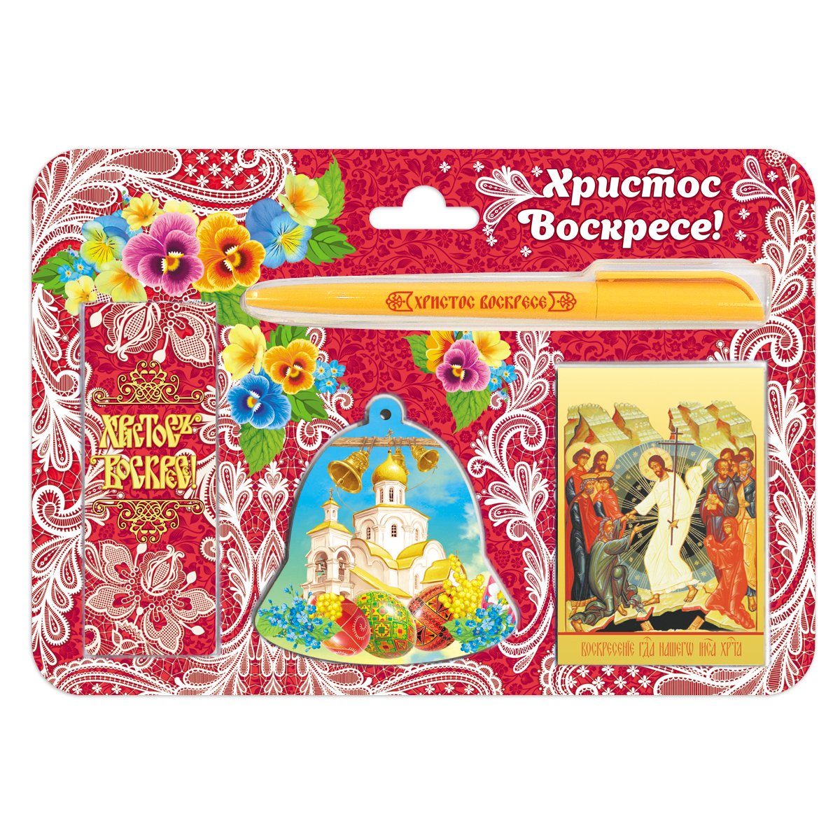 Пасхальный набор "Христос Воскресе! Анютины глазки": икона, ручка, магнитная закладка, магнит