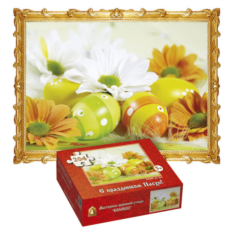 Пазл "Яйца с оранжевыми герберами" размер А4, 204 элемента