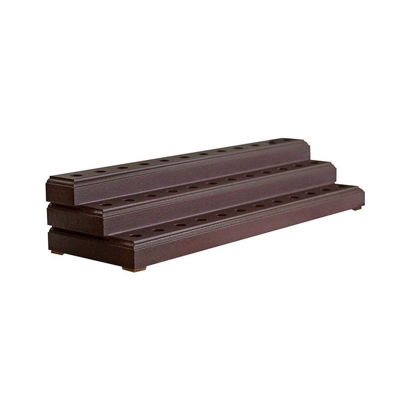 Для удобства в использовании церковных благовоний в храмах и в быту мастерская «Колокол» предлагает вашему вниманию подставку под благования. Прямоугольная трехъярусная основа из дерева прочной породы не только гармонично впишется в дизайн церкви или дома, но и позволит вместить в себя достаточно большое количество сосудов с благовониями емкостью по 1,5 мл. Утварь имеет приятный темный оттенок и лаковое покрытие.