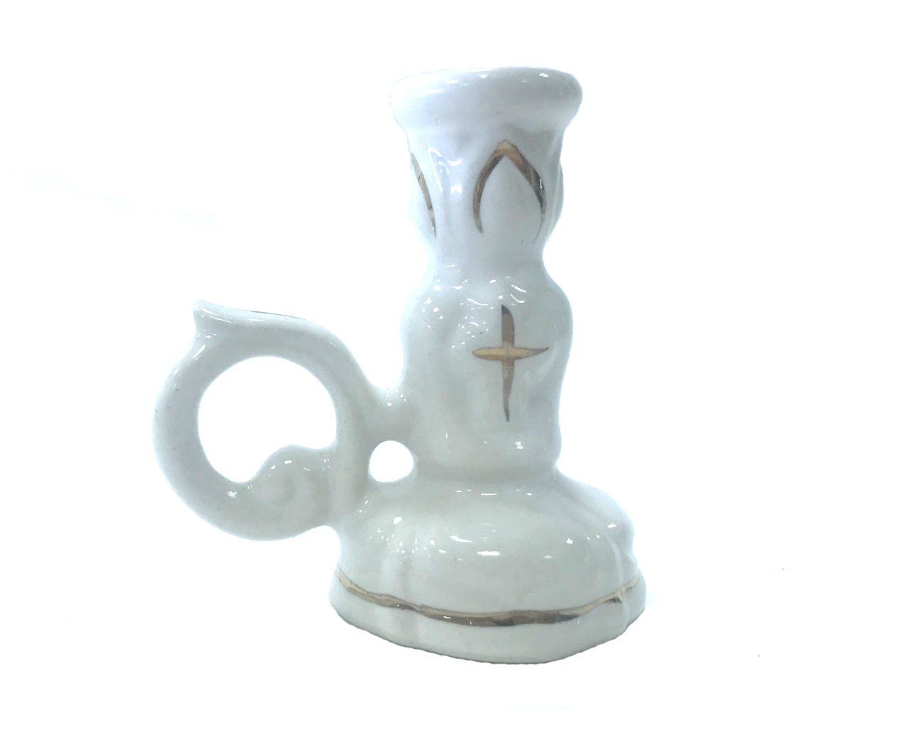 Подсвечник керамический, белый с золотом