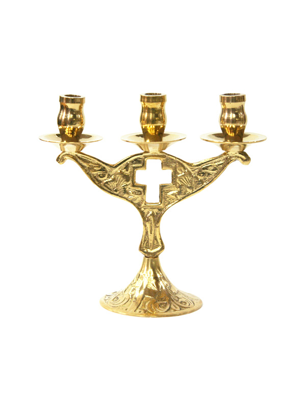 Подсвечник металлический на 3 свечи, высота - 11 см