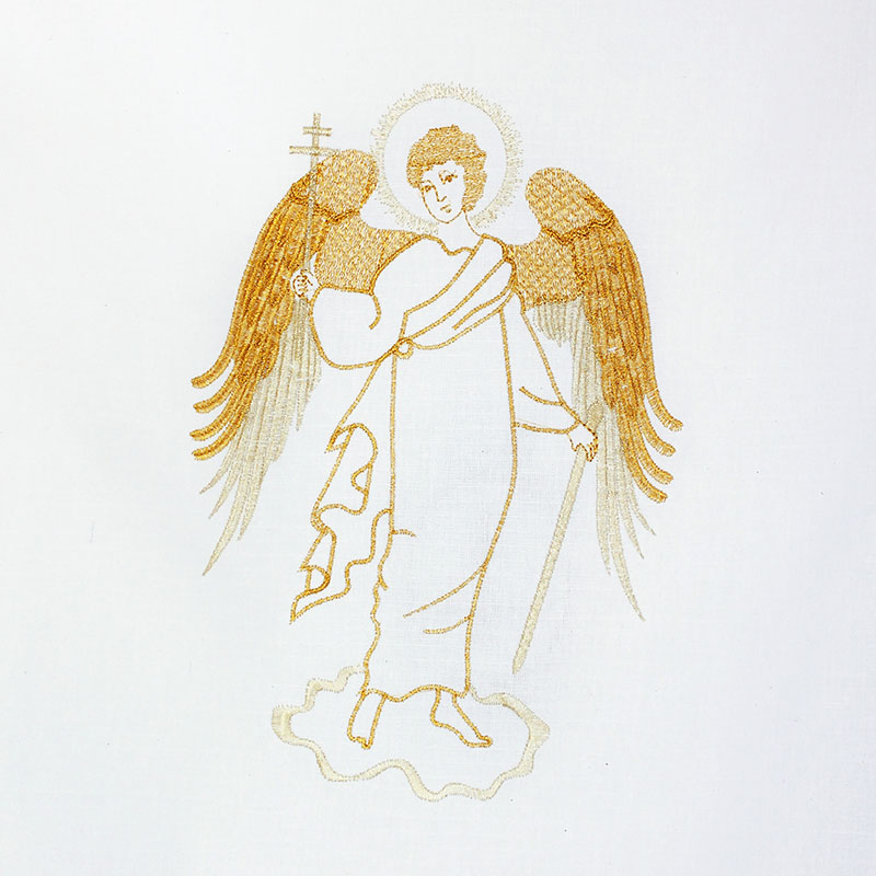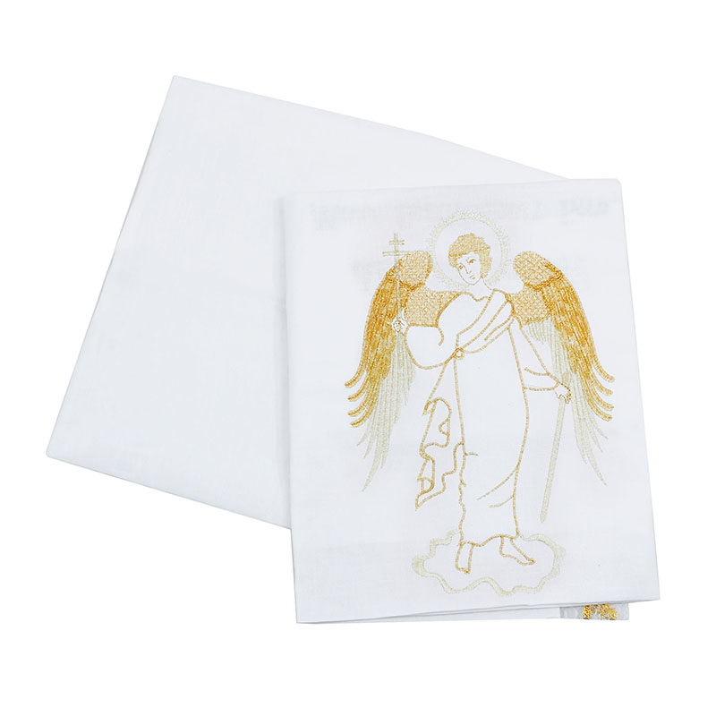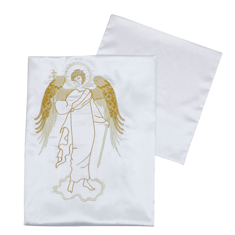 Погребальный набор Ангел (наволочка 30*30 см, покрывало 180*70 см) белый вышивка, кружево PN4004