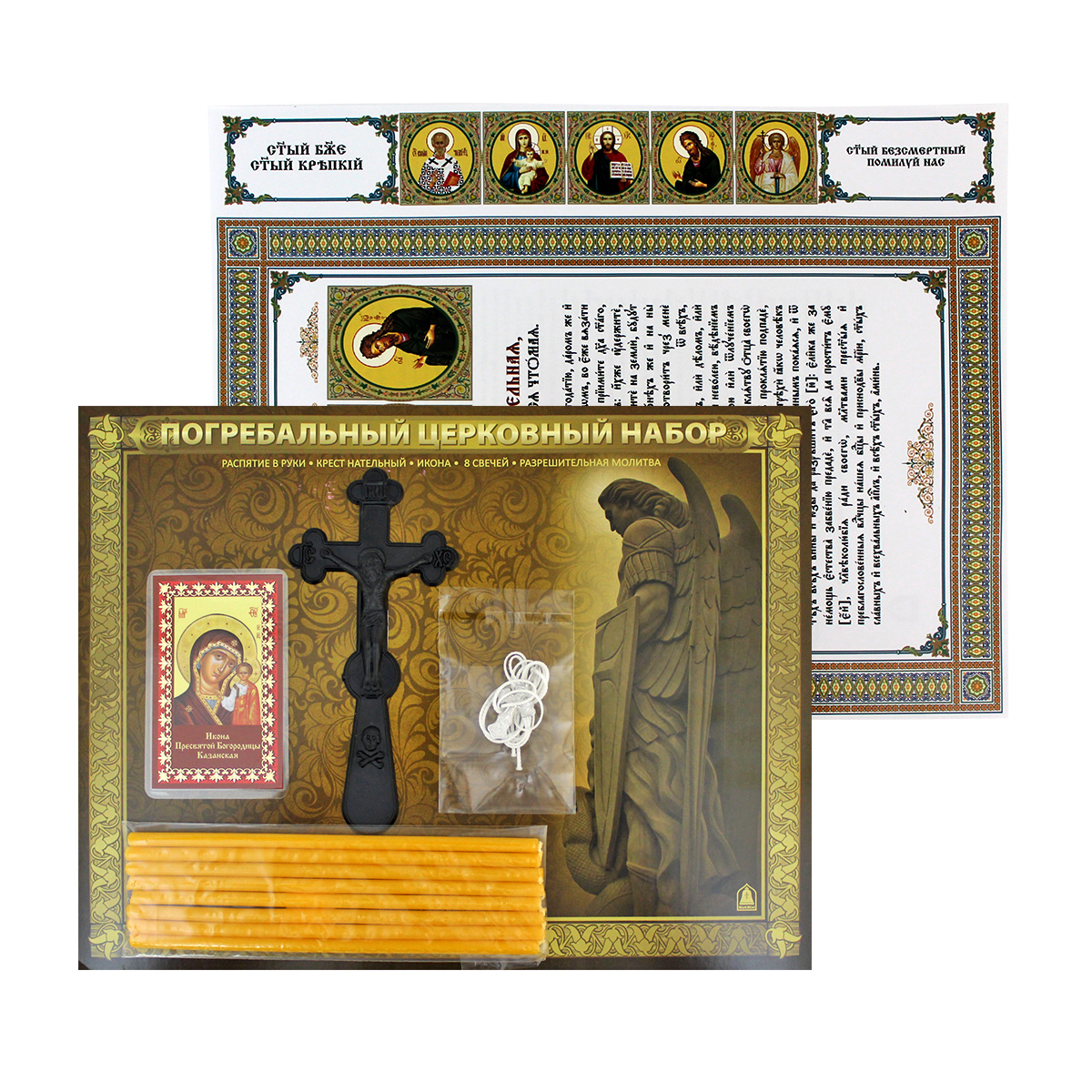 Задача близких людей при организации погребения состоит в том, чтобы достойно проводить усошего в послений путь. Погребальный набор «Б.М. Казанская» поможет вам совершить погребальный обряд полностью в соответствии с православными традициями. В состав такого набора неизменно входят: распятие, нательный крестик, свечи, икона и разрешительная молитва. Погребальные предметы обладают глубоким смыслом и позволяют верующим похоронить своих близких по всем канонам христианства.