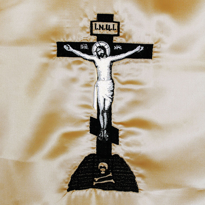 Погребальный набор Премиум (наволочка 50*50 см, покрывало 180*70 см) белый атлас, вышивка PN4007