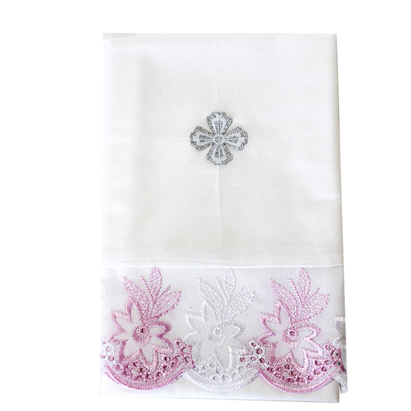 Полотенце крестильное, бязь, круж. шитье(розовое) 220*45