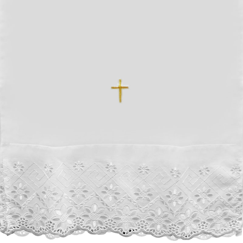 Полотенце крестильное К37 бязь круж. шитье (белое) 220*45