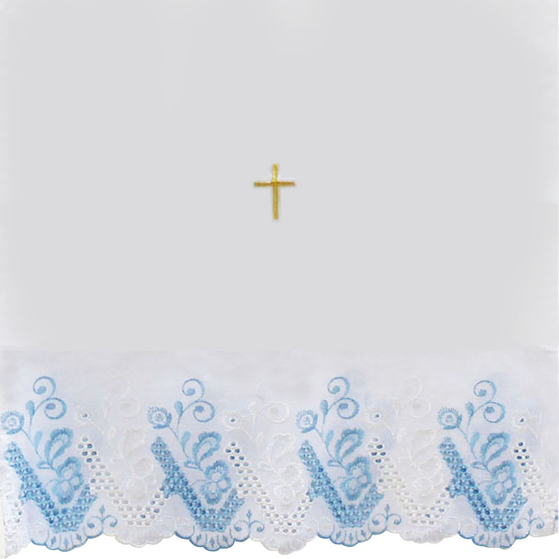 Полотенце крестильное К37 бязь круж. шитье (голубое) 220*45