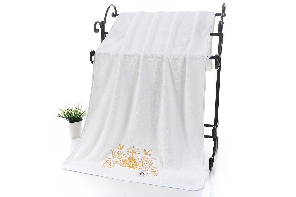 Полотенце махровое детское Крестильное "Ангелы с голубями, золото (70*143 см)