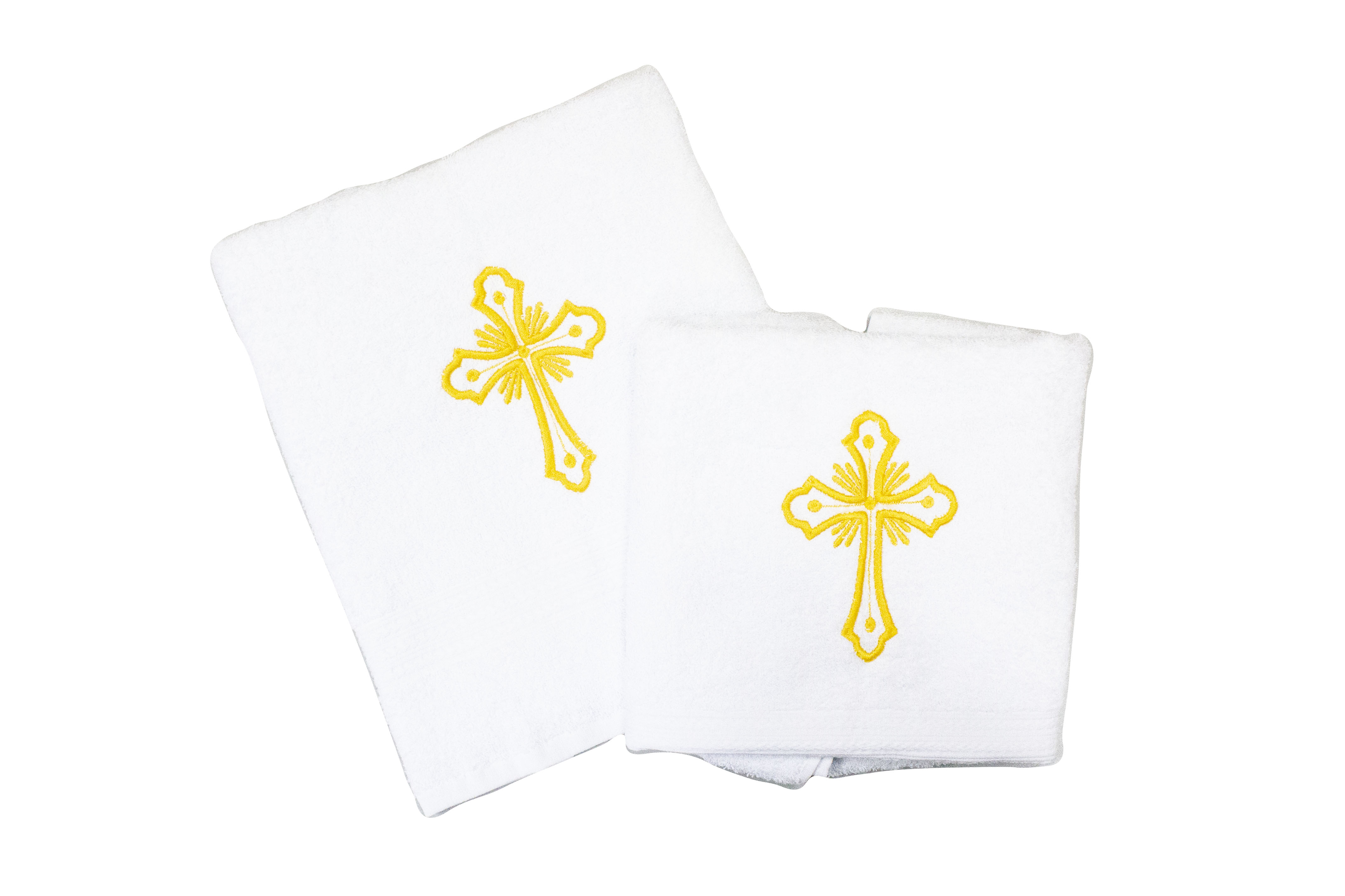 Полотенце махровое гладкокрашенное (белое) с вышивкой "крест" 50х90 ("Колокол")