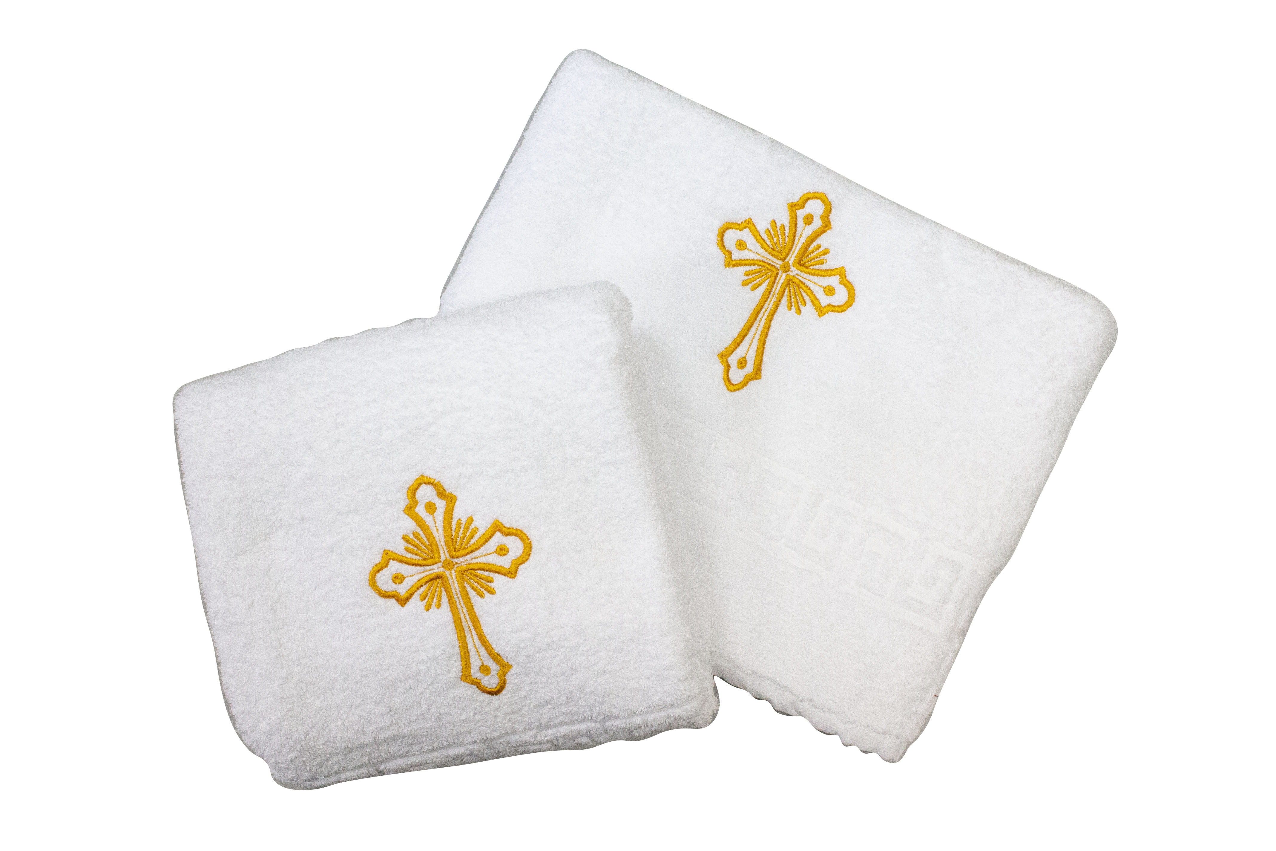 Полотенце махровое гладкокрашенное (белое) с вышивкой "крест" 70х140 ("Колокол").