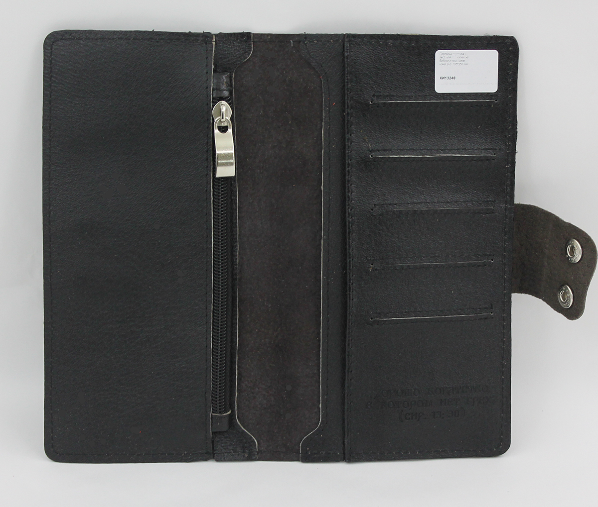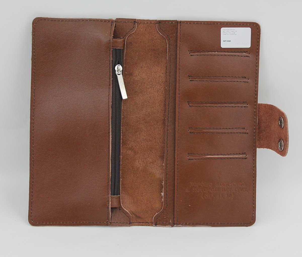 Портмоне мужское с заст. хляст, с изреч. из Библии и тисн. симв., кожа, р-р: 105*250 мм