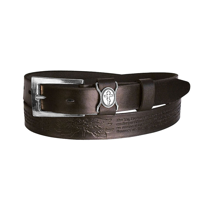 Пояс кож. с молитвой 50-25+ (коричневый)