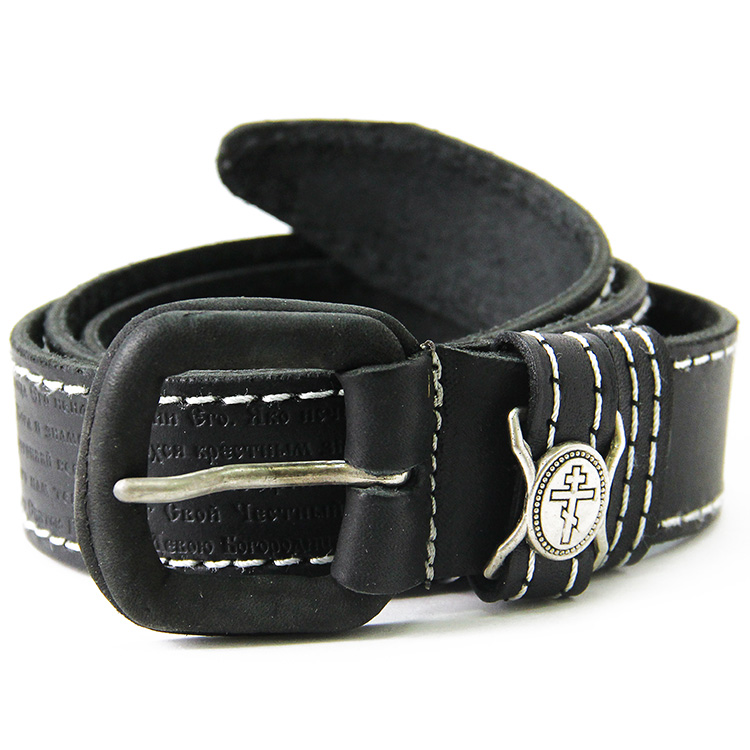Пояс кож. с молитвой 543+ (прошитый, черный)