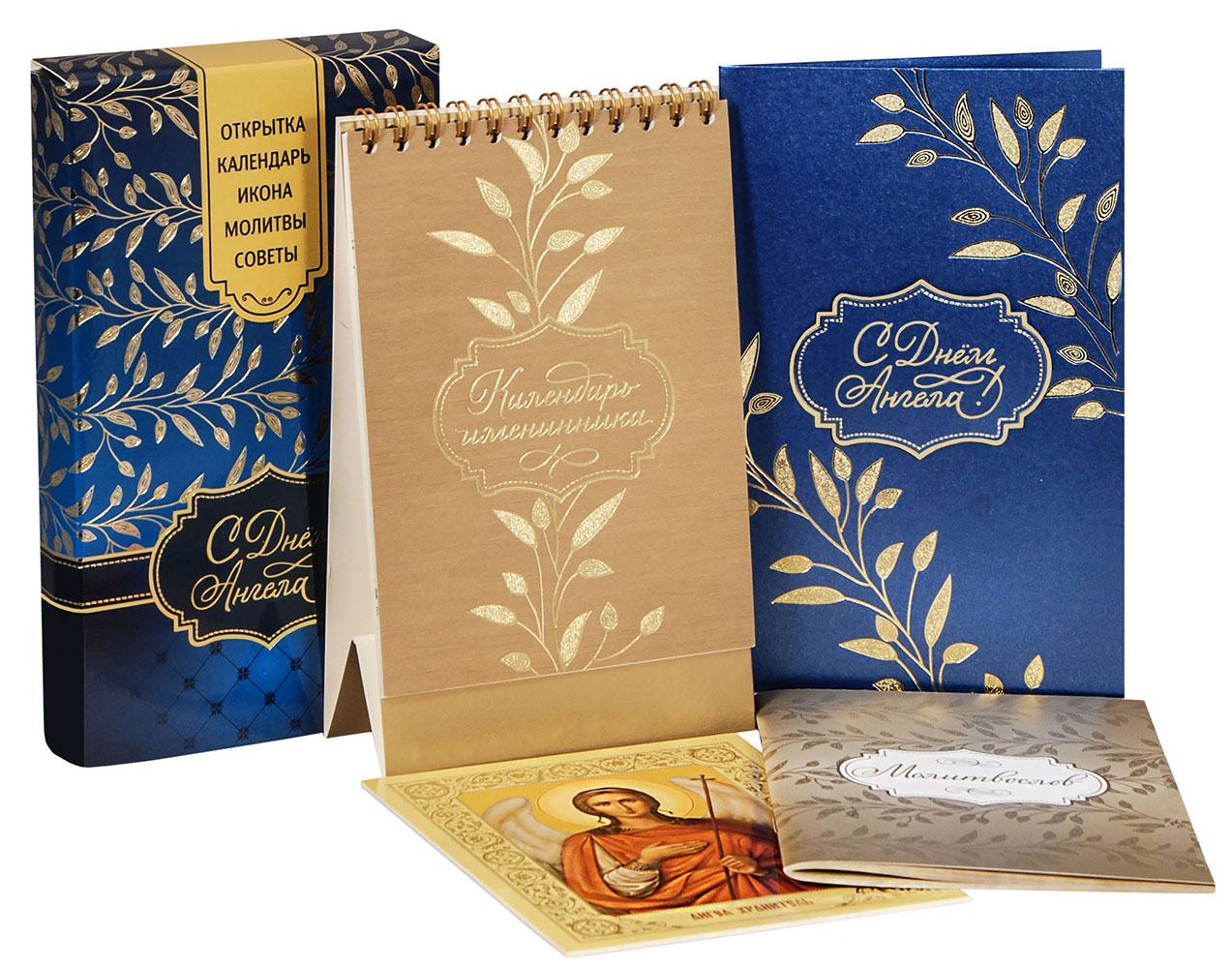 Православный подарочный набор "С Днём Ангела!". Открытка, календарь, икона, молитвы, советы (синий)