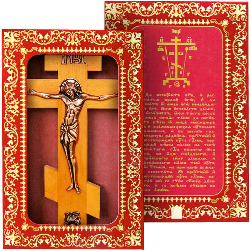 Распятие восьмиконечное большое с литьем 3 эл медь подарочная упаковка 210*135 мм