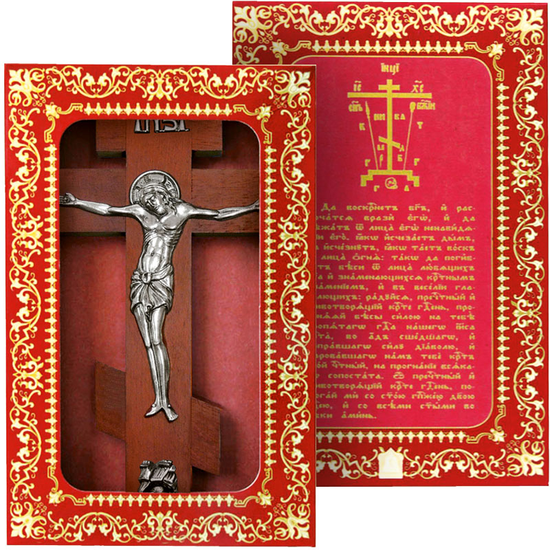 Распятие восьмиконечное большое с литьем 3 эл олово подарочная упаковка 210*135 мм