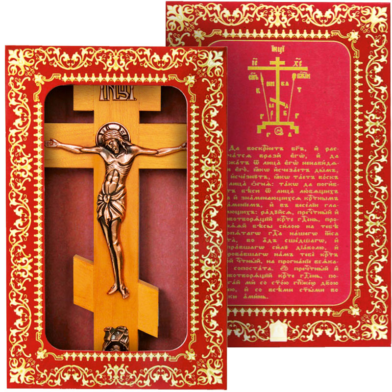 Распятие восьмиконечное большое с литьем 7 эл медь подарочная упаковка 210*135 мм