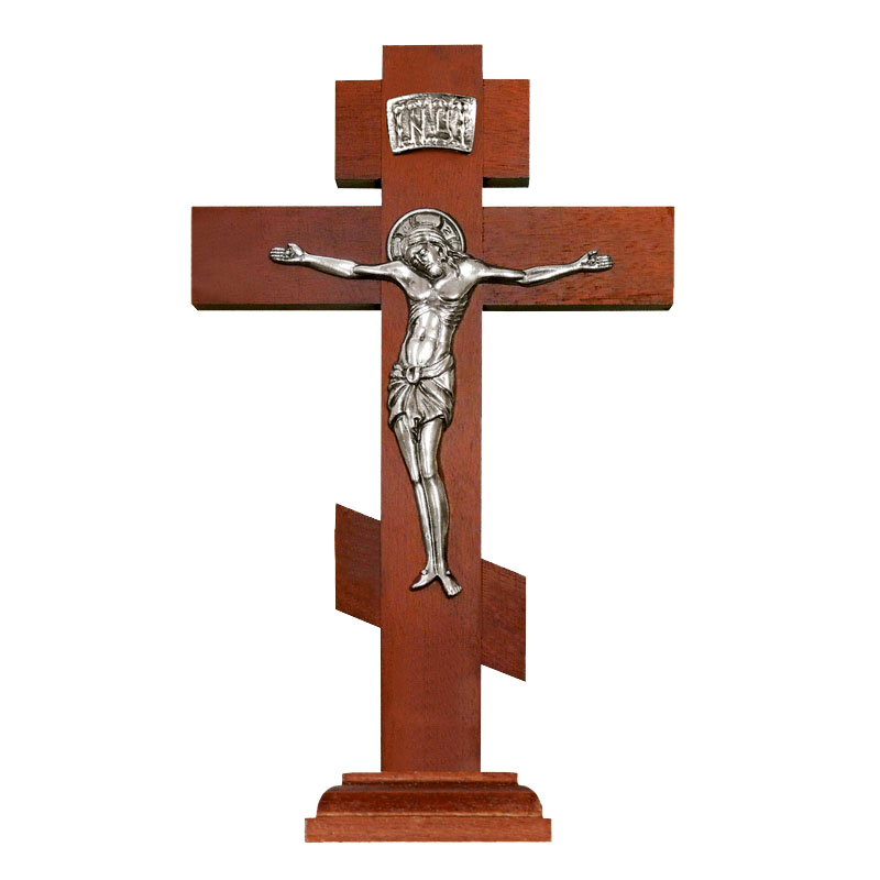 Распятие восьмиконечное среднее с литьем на подставке, олово 170*95 мм