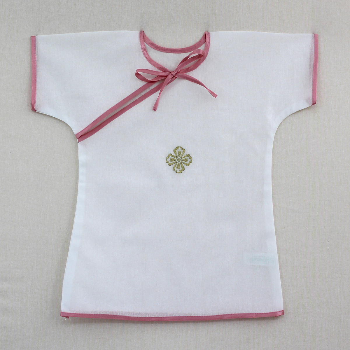 Рубашка крестильная 1-2 года (розовый) косоворотка (Колокол)