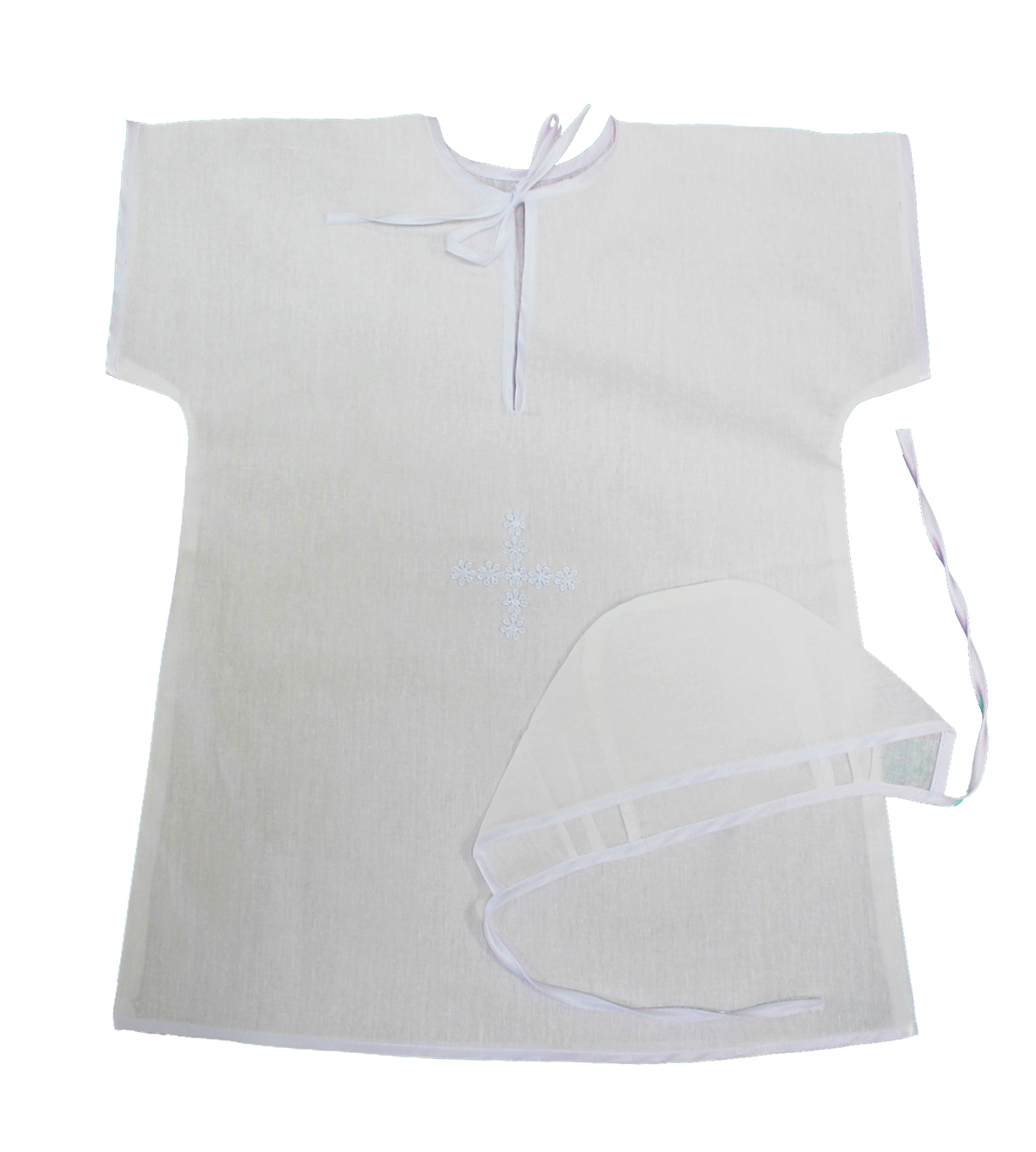 Рубашка крестильная + чепчик от 0 до 1 года (цвет белый) бязь (Колокол)