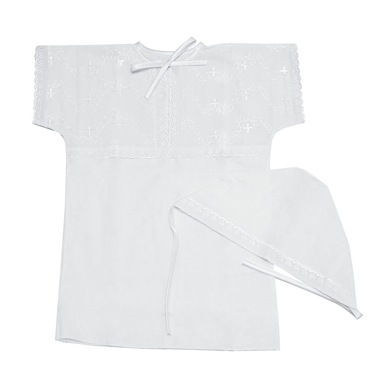 Рубашка крестильная с чепчиком до года (белая)