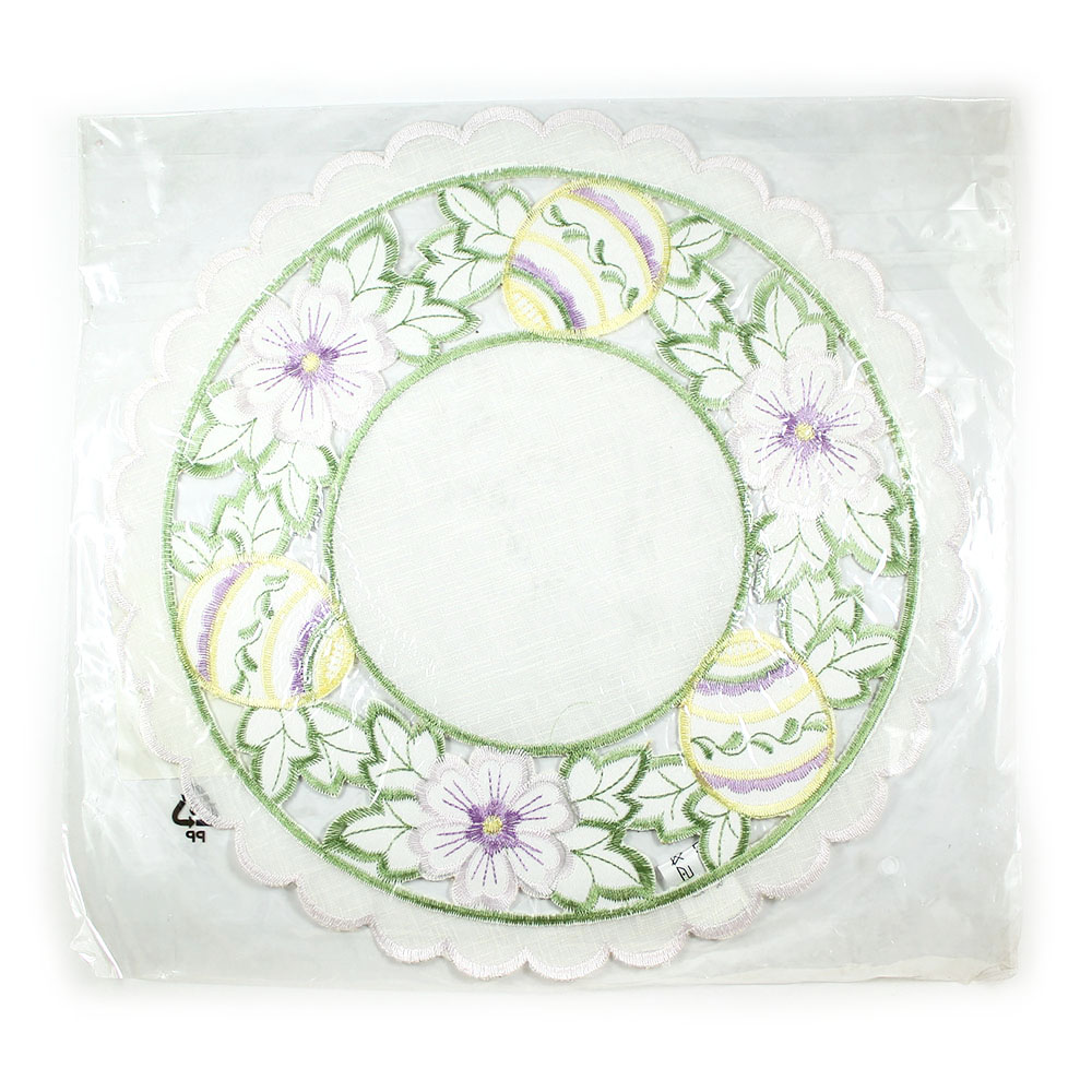 Салфетка пасхальная вышивка Ришелье п/эстер d30см 12878