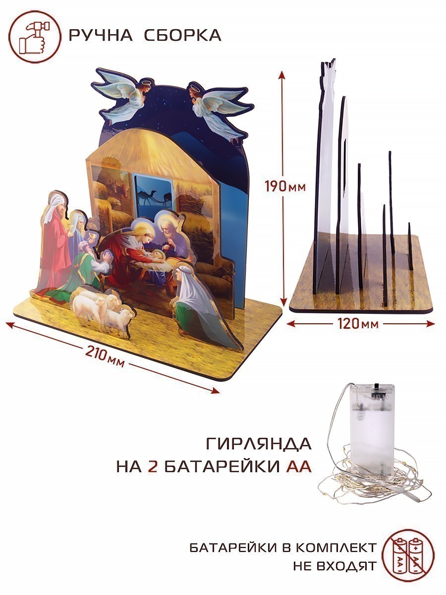 Сборная модель "Вертеп рождественский" с гирляндой №2,145х210х3 мм