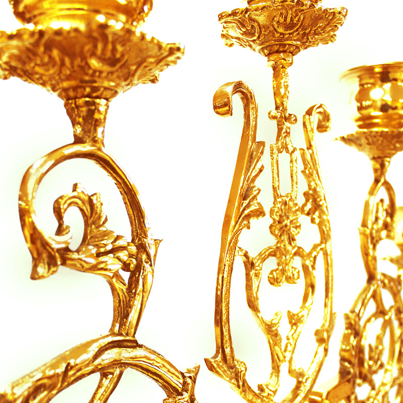 Во времена христианства семь огоньков церковного светильника обретает новый смысл, символизируя семь Даров Духа Святого и семь церковных главных Таинств. Мастерские «Колокол» изготавливают семисвечники различных видов и форм. Предлагаемый большой запрестольный семисвечник на одном основании выполнен из латунного сплава, а его семь лампадных чашечек расположены на богато декорированных ажурных рожках. Больше различной церковной утвари вы можете найти в нашем интернет-магазине.