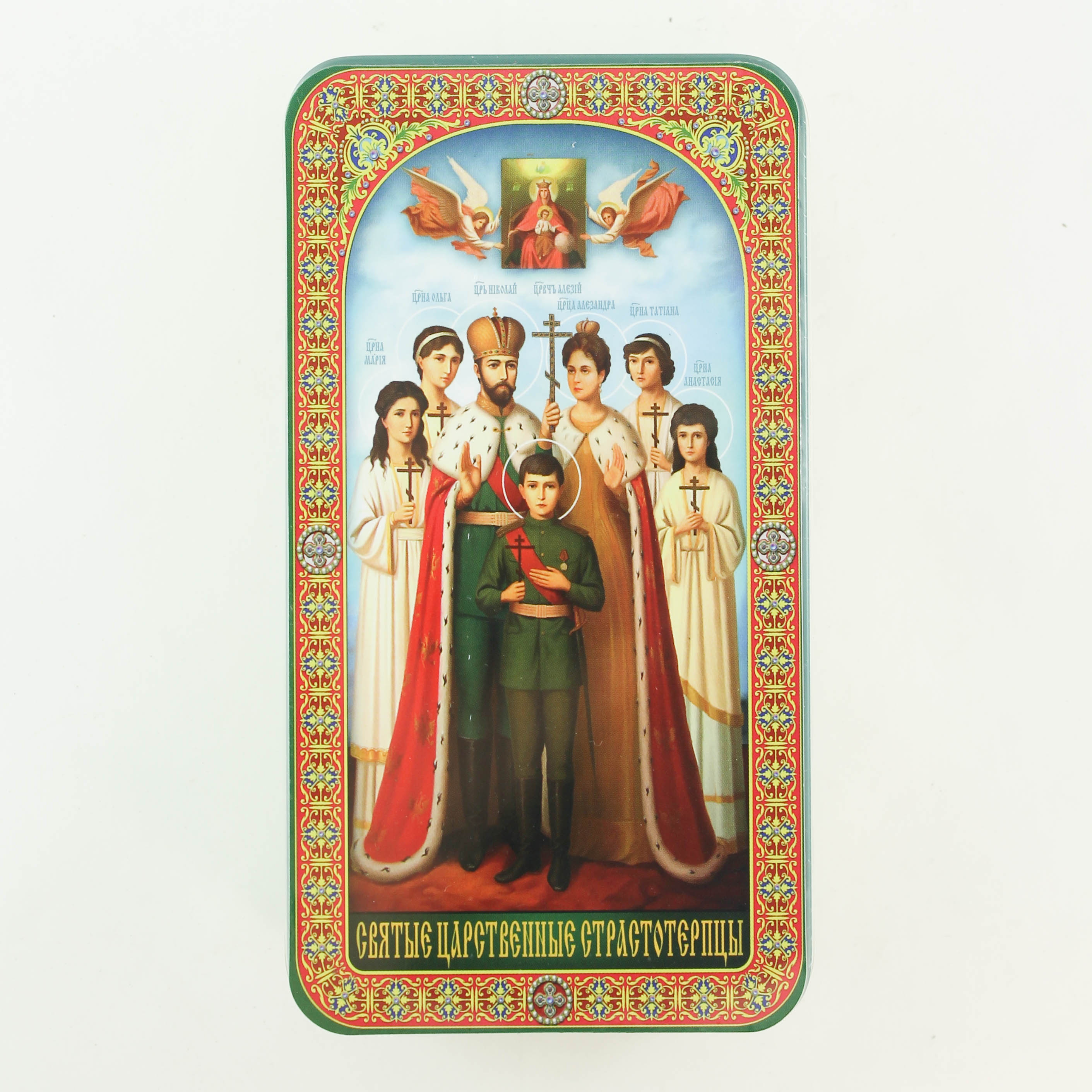 Шкатулка подарочная 100 г Царская семья с магнитом (черный цейлонский чай стандарт ОРА) ж/б