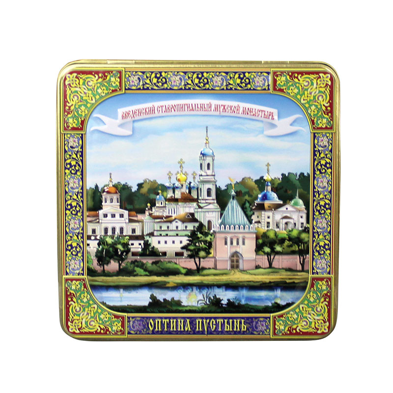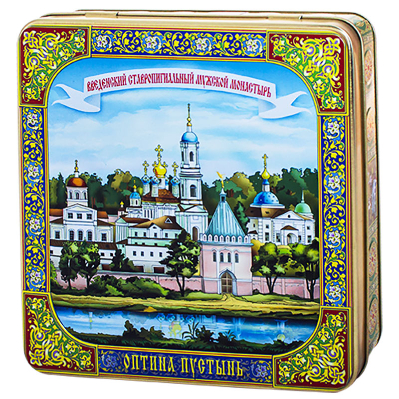 Шкатулка подарочная 125 г Оптина Пустынь (чай черный цейлонский РЕКОЕ 75 г и ОР 50 г) ж/б
